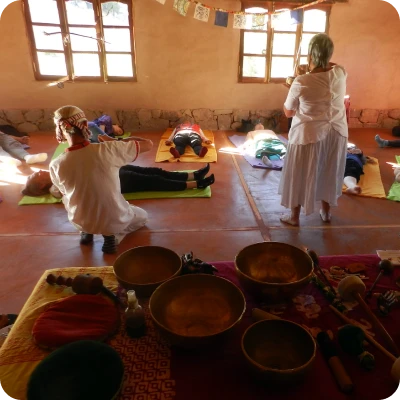 Utilizando instrumentos como cuencos tibetanos, campanas, y flautas, se emiten sonidos armónicos que penetran profundamente en el cuerpo y generan un efecto de “masaje de relajación”.